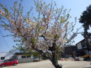 開発活動は休止中ですが、駐車場のサクラは今年も花を咲かせています。