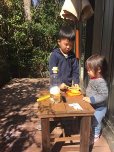5歳の男の子と、1歳9ヶ月の女の子の2人の子どもを相手に仕事と育児は夫婦で力を合わせてやってるようです。