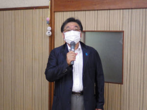 コロナ禍の影響で4月予定の代表世話人歓送迎会が中止となりました。しかしながら何らかのかたちで3年間ご尽力を頂きました前代表世話人、谷渕修平さんの送迎会を行いたいとの考えから6月2日の三役会で新旧代表世話人の歓送迎会を行いました。当日は顧問会の皆さん(代表世話人経験者のご先輩)にもご参加頂き、小人数で、「代表世話人歓送迎会」を執り行いましたのでその模様を皆様にその1~その3の三部に分けてできるだけ詳しくご案内いたします。  尚、コロナウイルス感染拡大防止対策に配慮して、マスク着用、三密防止で開催しました。(壇上での発表、記念写真の時だけはマスクを外して頂きました。ご理解の程、よろしくお願いいたします。)