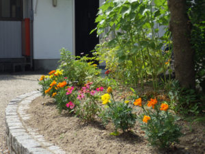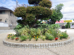 事務所ロータリーの管理、事務所駐車場周りの除草、清掃などは会員さんにお世話になっています。