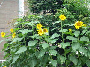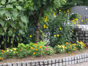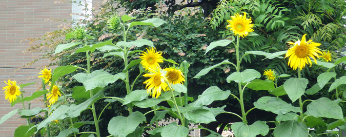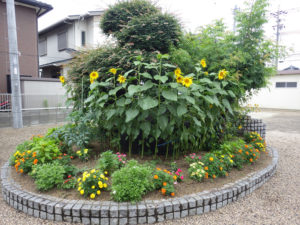 こんにちは。梅雨空のもといかがお過ごしでしょうか?ホームページでたびたびロータリー花壇の様子を会員さんに紹介をしてきましたが、今が最高の状態ではないかと思い、またまたご紹介します。これも日々の会員さんのお手入れのおかげと感謝感謝です。夏のイメージを代表する「ひまわり」も写真のように咲き誇っているようです。ぜひ事務所へお花見にお越しください。できるだけお花の写真を多く掲載してご紹介します。