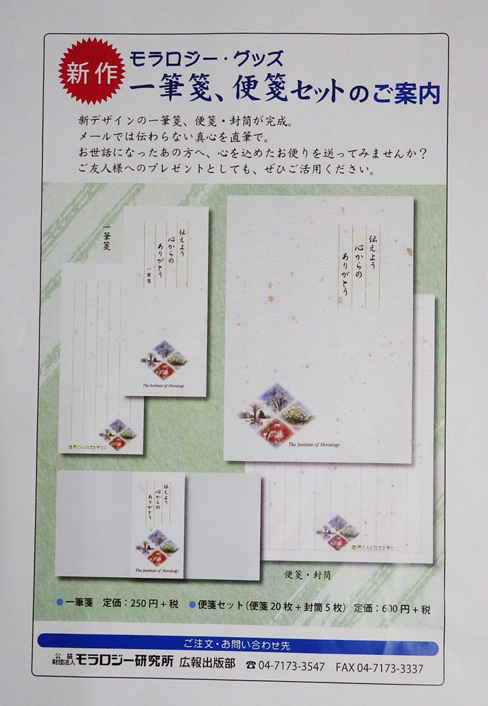 モラロジーグッズ 新デザインの一筆箋、便箋セットのご案内です。