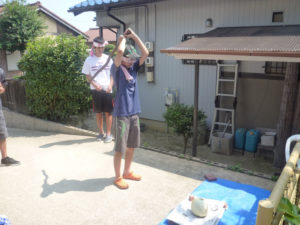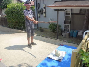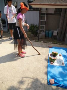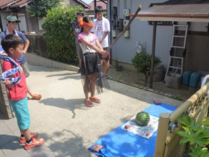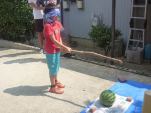 8月21日 谷渕修平さんお孫さんのスイカ・メロン割