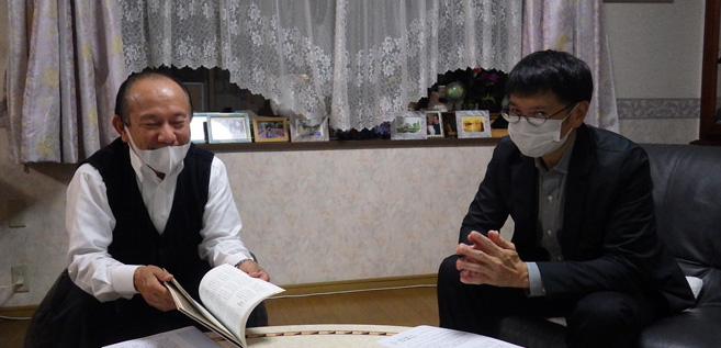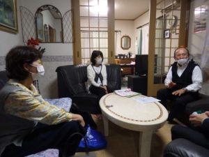 10月8日に小柳昭夫さん・美子さん宅へ武藤章生さん・竹内司、竹内由美子で家庭訪問をしました。今回は近況報告とれいろうブックレット「心に残る話」の1話を輪読しました。