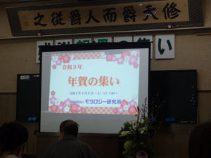1月9日(土)午前11時より公益財団法人モラロジー研究所の令和3年「年賀の集い」がコロナ禍のために全国をリモートで結び開催されました。本部と台湾、アメリカ、ブラジルなどの各国と国内では沖縄、畑毛、谷川、九州、陸前高田事務所などと廣池理事長とのご挨拶の様子が紹介されました。四日市モラロジー事務所もリモートの画面の中に登場しました。この様子は「モラロジーネット」で1月末までご覧いただけます。