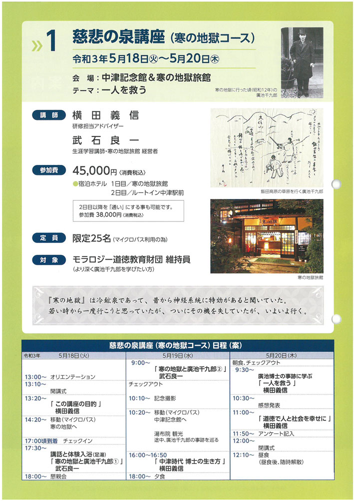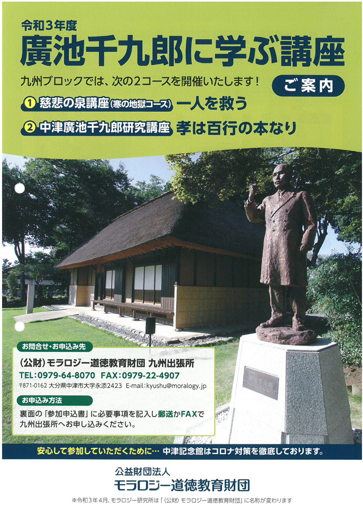 令和3年度の廣池千九郎に学ぶ講座が以下の内容で2コース開催されます。