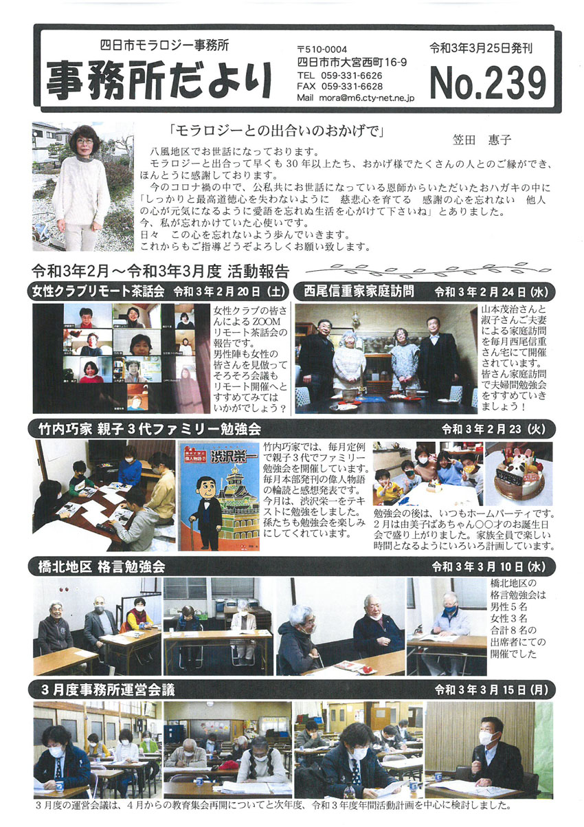 令和3年3月25日発刊 事務所だより239号を掲載しました。