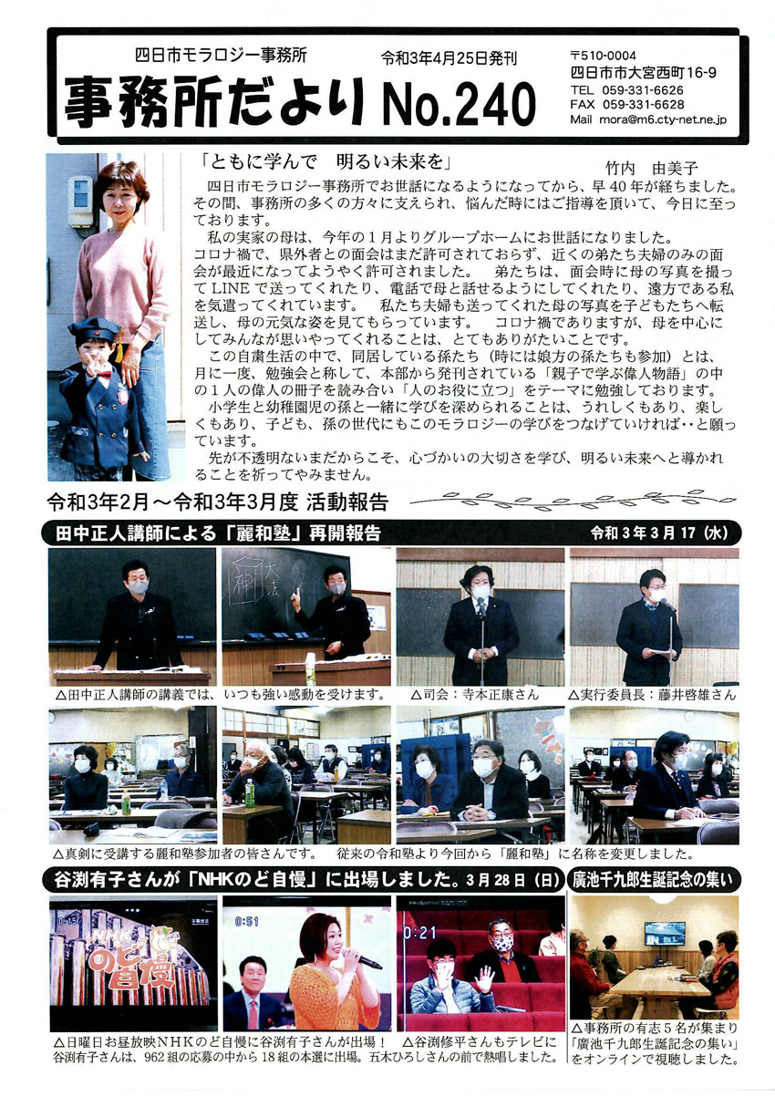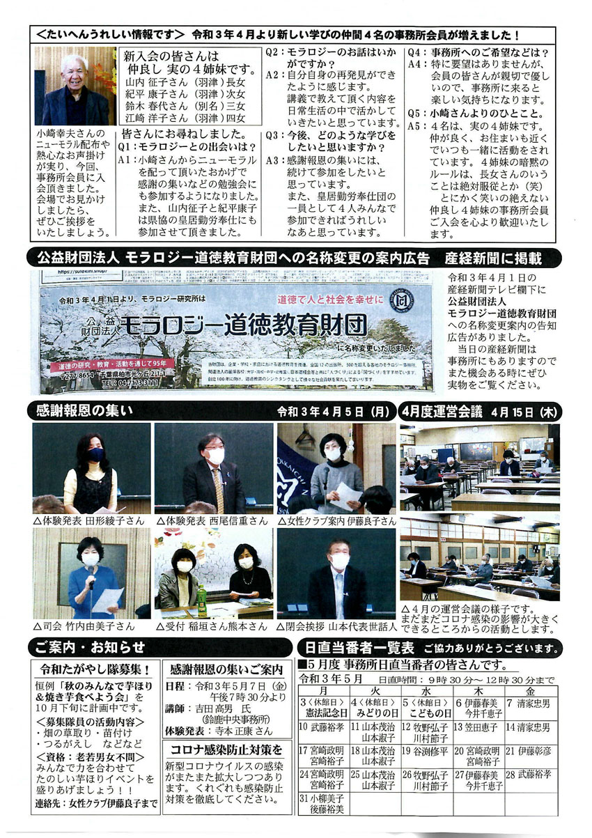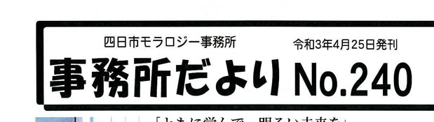 4月度の事務所だよりです。4月から新しく事務所会員に登録をして頂いた4名の仲間の紹介もしています。また、会員さん全員に配布される紙ベースの「事務所だより」も今月からカラー印刷になりました。皆さんの身近な記事も是非お寄せください。