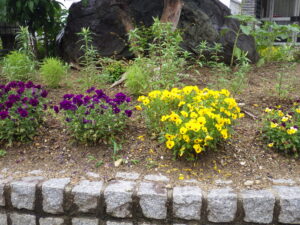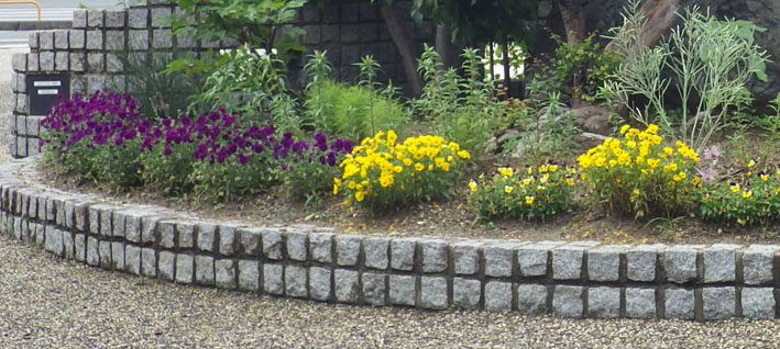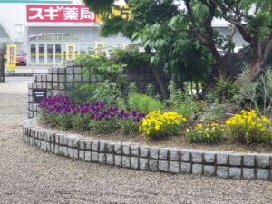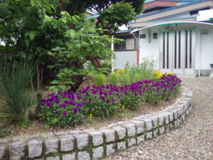 四日市モラロジー事務所のロータリーは、いつも会員さんのお世話で季節の花々を植え替えて頂いております。現在のロータリー花壇の様子です。