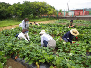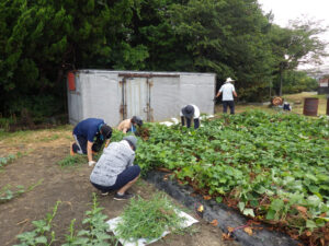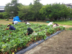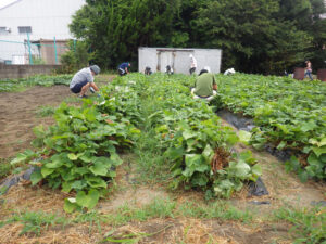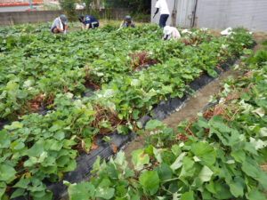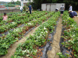 8月1日早朝より芋畑たがやし隊が草取りを行いました。たいへん暑い中でしたがたくさんの方に参加頂いたおかげで比較的早くに草取り作業が完了できました。おいしいサツマイモの収穫を期待しています。