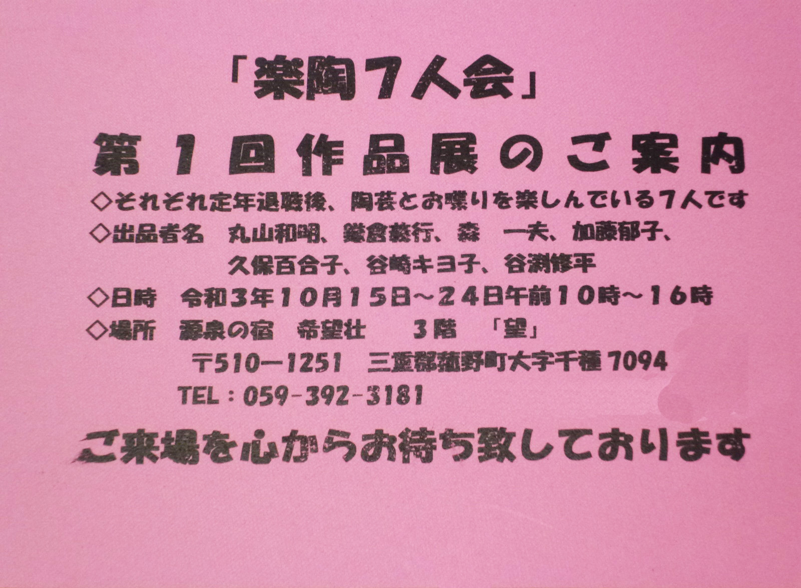 谷渕修平さん主催の陶芸教室の皆さんによる作品の展示会が開催されます。開催内容が谷渕修平さんより連絡がありましたので、ご紹介します。
