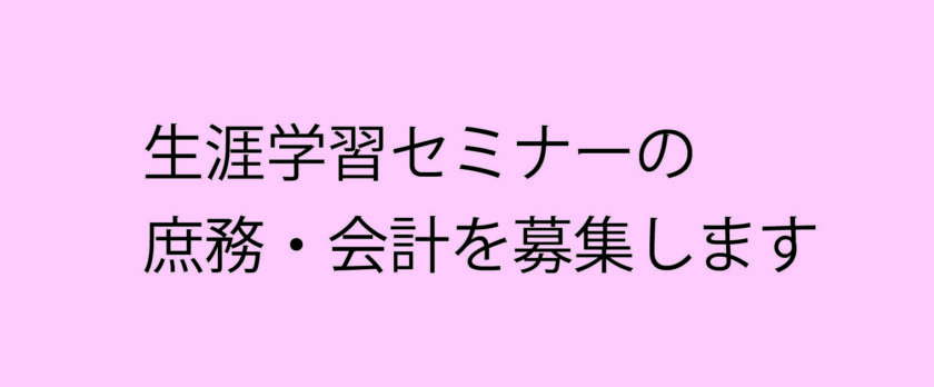 来年3月に開催の生涯学習セミナーで西尾信重が実行委員長を務めさせて頂きますが、庶務と会計をお手伝いして頂ける方2名を募集します。