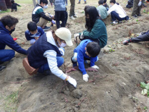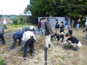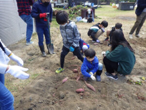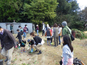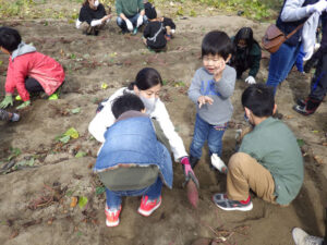 10時、芋ほりのスタートです。たいへん良いお天気に恵まれて、たくさんのファミリーにお集り頂きました。 芋ほり活動 その2へ続きます。