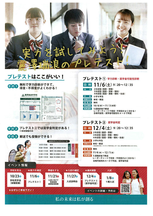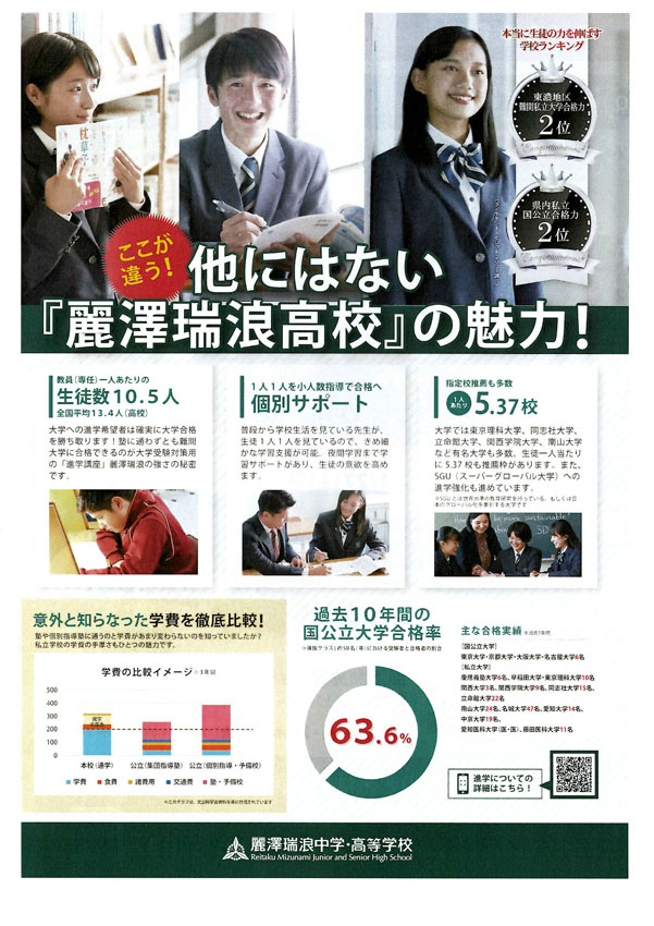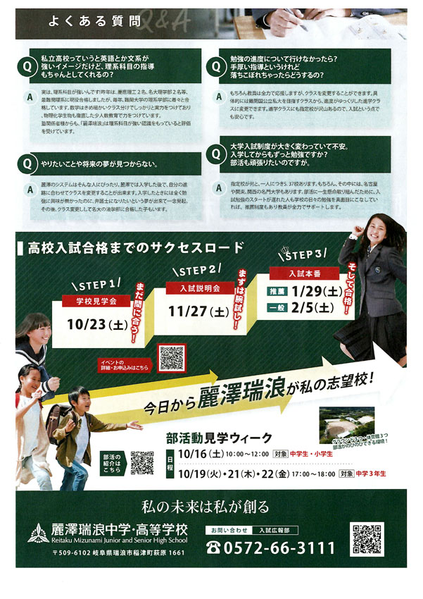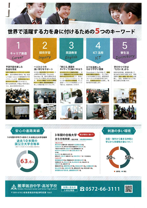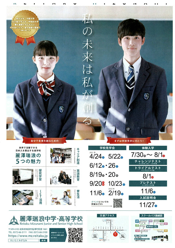 麗澤瑞浪中学・高等学校への入学促進用パンフレットが届きましたのでご案内します。 麗澤教育の良さを是非とも子どもさん、お孫さんにおすすめ頂きますようお願いいたします。
