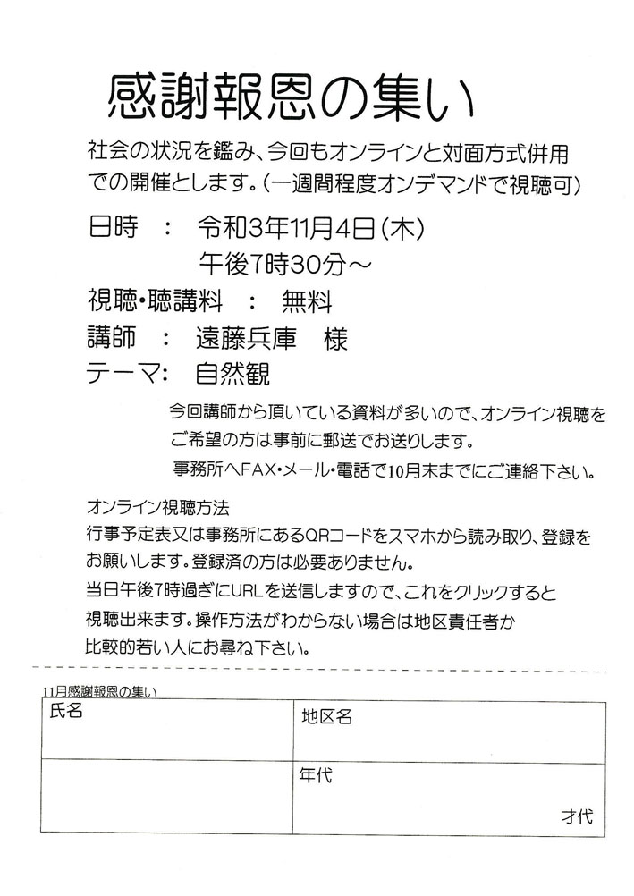 11月度感謝報恩の集い 案内