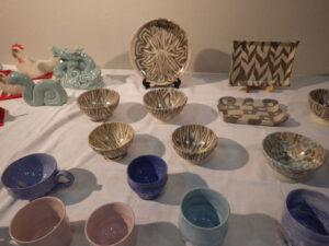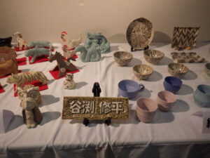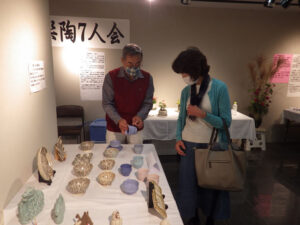 谷渕修平さんの陶芸仲間「楽陶7人会」の第1回作品展が湯の山希望荘にて10月15日~24日まで開催されました。期間中にはたくさんの方が来場されたと聞いております。