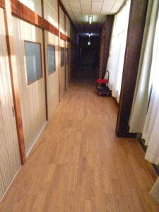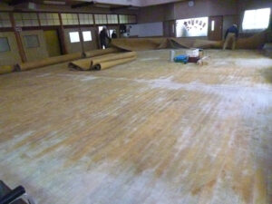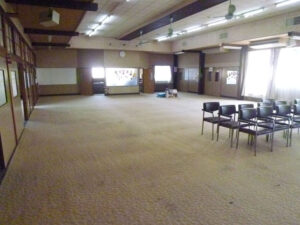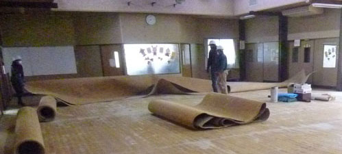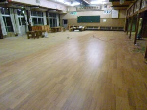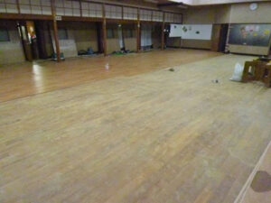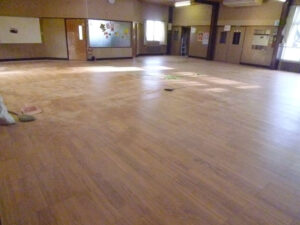 今年度は、事務室の床、廊下、そして今回は講堂と講堂横の廊下の床を改装しました。また、是非一度事務所のすばらしくきれいになった床をみに来てください。