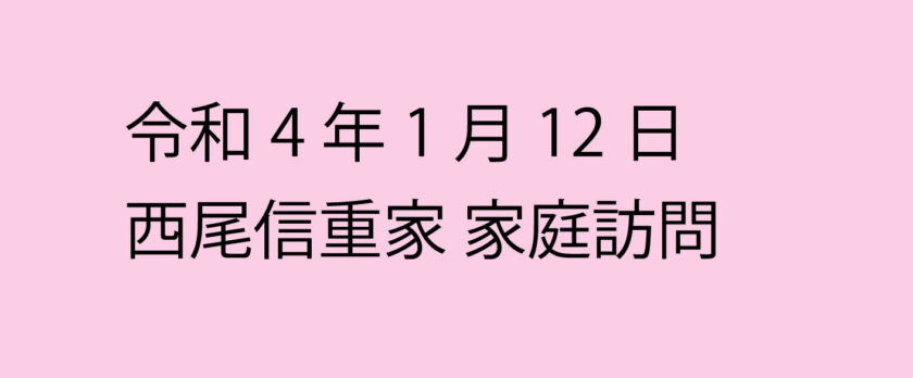 1月12日は西尾信重家への笠田環嗣さんと惠子さんご夫妻の家庭訪問が行われました。