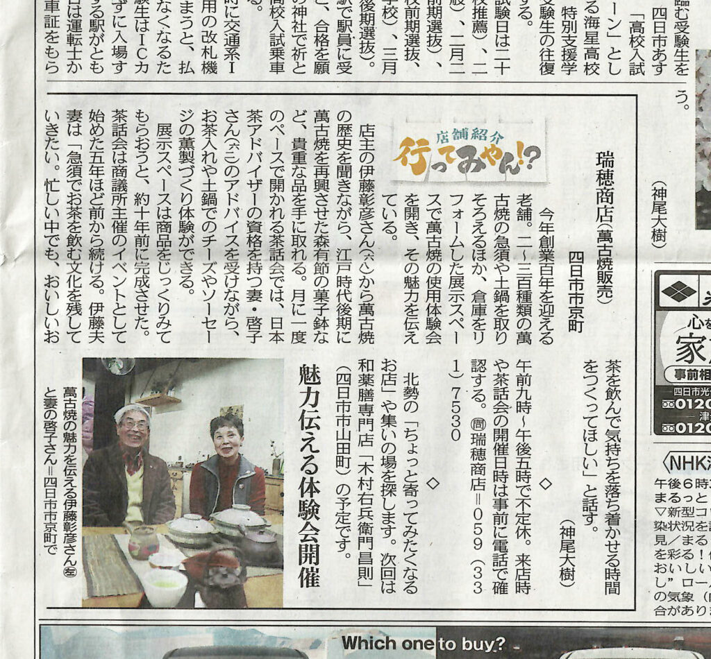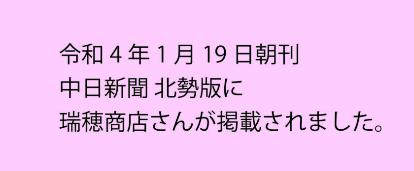1月19日 瑞穂商店さんが中日新聞に掲載されました。その掲載記事をご案内します。