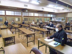 同じく2月4日感謝報恩の集いの開催報告ですが、こちらは森下聖司講師、体験発表の武藤まり子さん、そして朝日・八風地区の皆さんによるオンライン配信のための現場の状況(事務所講堂の様子)をご案内します。