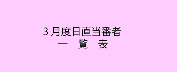 3月度事務所日直当番者一覧表を掲載しました。 いつも事務所日直を担当頂きます皆様に感謝いたします。