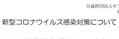新型コロナウイルスの感染防止対策は、各自の感染対策への取り組みが大切です。財団本部からも感染防止に向けての案内が届い…