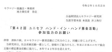 モラロジー研究所が毎年活動をしています「ユニセフ ハンド・イン・ハンド募金活動」への参加協力のお願いをご案内します。…